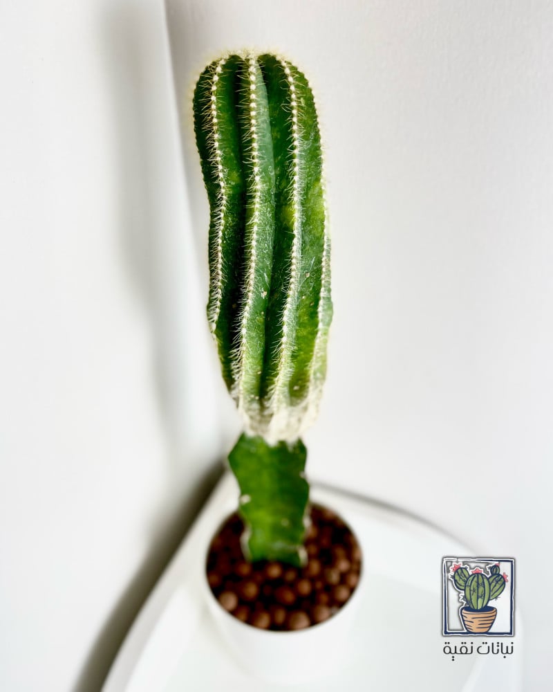 الصبار الصيني او صبار القلعة السهرية في حوض بلاستك اللون ابيض.وهو من انواع الصبار بطيئة النمو ويتميز بلونه الاخضر ويعتبر من الصباريات المزهرة باللون الابيض و الأصفر وهي نادرة الظهور ، يمكن وضعه في صالات الجلوس و بيئات العمل المختلفة.