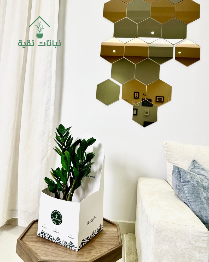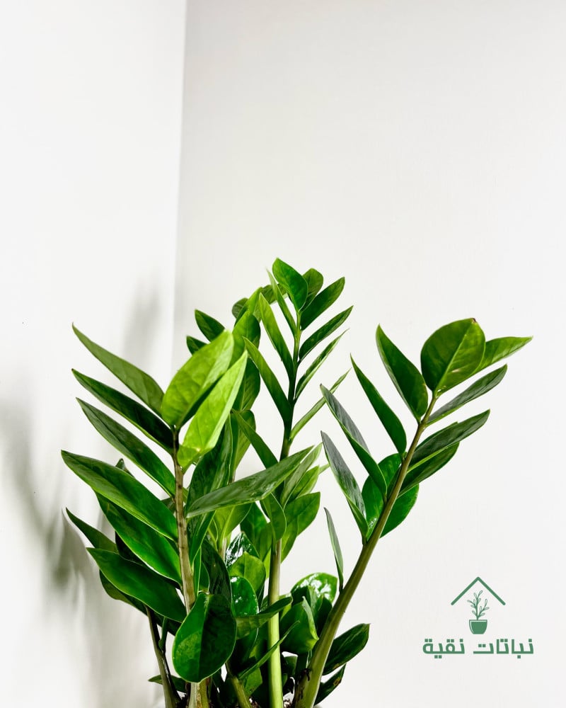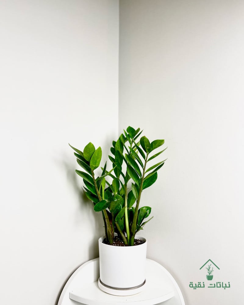 نبات الزاميا في حوض سيراميك اللون ابيض انيق .من النباتات الداخليًة مشهورة للغاية. لها أوراق صغيرة ولكنها واسعة، خضراء داكنة، لامعة تتعرج إلى أعلى، وسيقان رفيعة. يتمتع هذا النبات بخصائص تنقية الهواء مثل إزالة المركبات العضوية المتطايرة البنزين والتولوين وإيثيل بنزين والزيلين من الهواء المحيط.