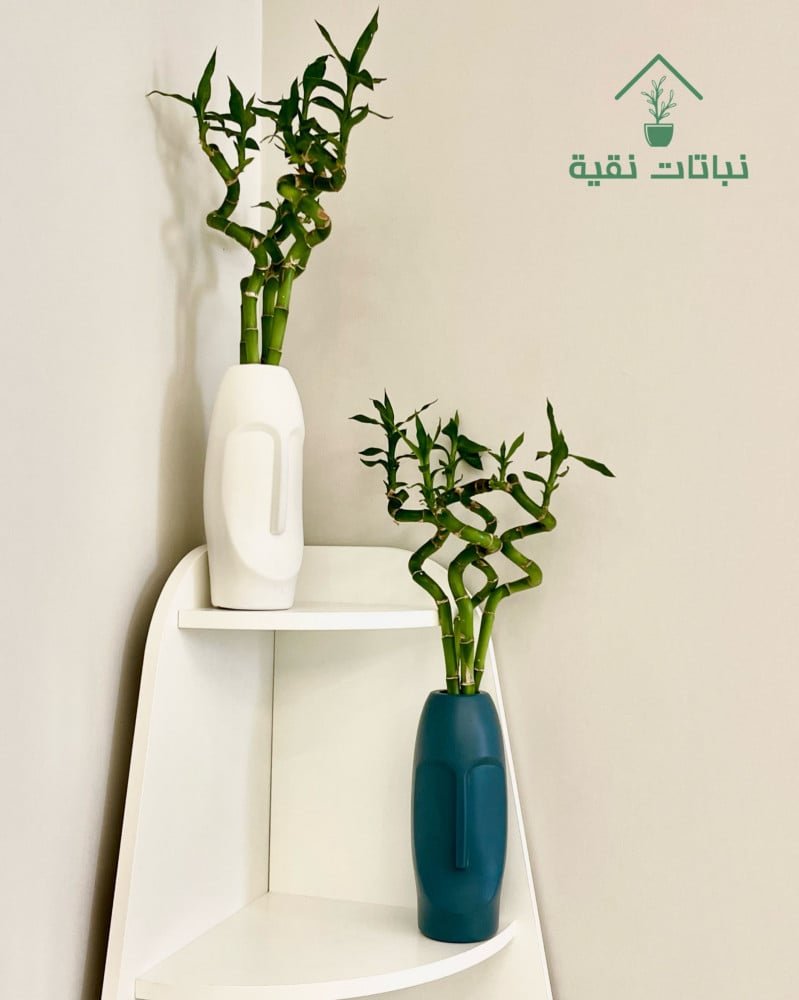 نبتة ساق البامبو العدد 4 في فازة بلاستك اللون ابيض انيق. وهي من النباتات المائية وتسمى ساق البامبو او قصب الحظ ( Lucky Bamboo ) وهي نبتة جميلة تشبه القصب ، نبتة مائية لاتحتاج للكثير من العناية ويمكن وضعها في صالات الجلوس أو المكاتب او غرف النوم.