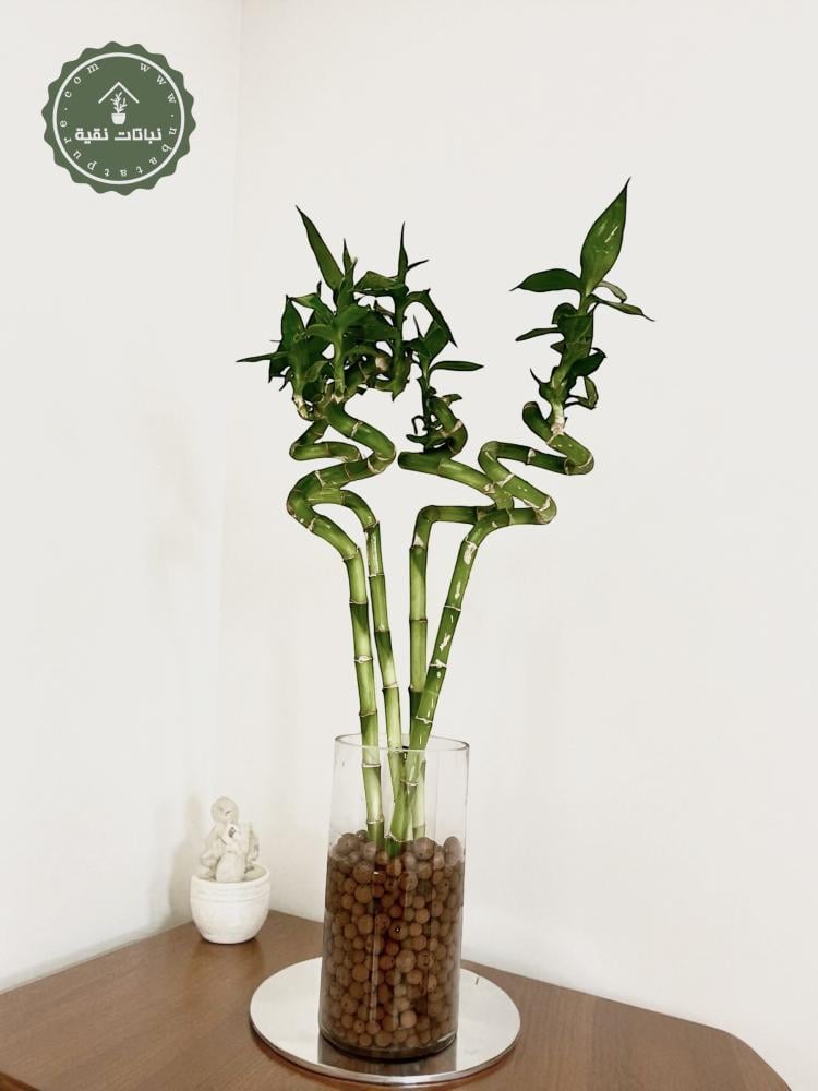 نبتة ساق البامبو العدد 4 في فازة قزاز انيقة. وتسمى ساق البامبو او قصب الحظ (Lucky Bamboo)وهي نبتة جميلة تشبه القصب ، وهي من النباتات المائية لا تحتاج للكثير من العناية ويمكن وضعها في صالات الجلوس أو المكاتب او غرف النوم.
