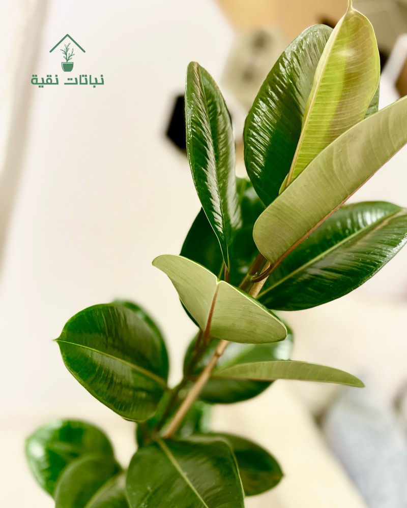 نبتة فيكس المطاط داكنة في حوض سيراميك اللون ابيض و رمادي انيق. تعتبر من النباتات المميزة ذات أوراق كبيرة ولامعة بلون أخضر داكن، وتعتبر من النباتات الدائمة الخضرة. تتميز هذه النبتة بسهولة العناية بها وتحملها لظروف الإضاءة المنخفضة، وهي إضافة مثالية لأي منزل أو مكتب.