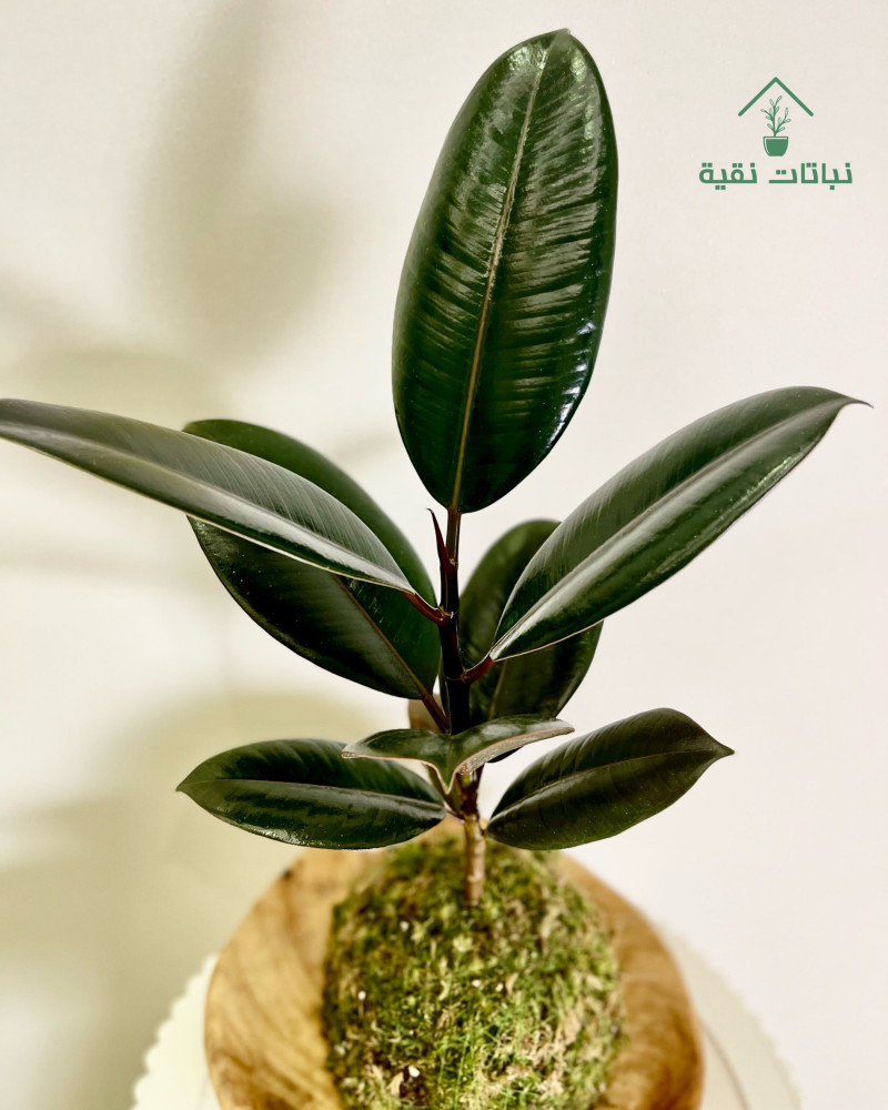 نبتة فيكس المطاط على موس طبيعي في صحن من الخشب الطبيعي الانيق. تعتتبر اضافة جميلة و طبيعية للمنازل و المكاتب و الفنادق و تتميز نبتة فيكس المطاط الداكنة بأوراقهاالكبيرة الملساء ذات اللون الأخضر الداكن والملمس المطاطي ، و تزيد النبتة جمالًا وفخامة بفضل زراعتها على موس طبيعي الذي يعطي مظهرًا عضويًا وطبيعيًا، وتعطي شعورًا بالهدوء والاسترخاء بفضل جمالها وتأثير الألوان الخضراء الهادئة على العين ويفضل رشها برذاذ الماء كونها محبة للرطوبة.
